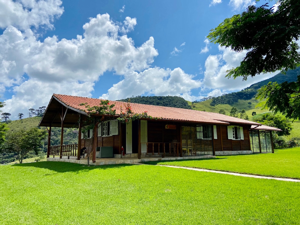 Quinta do Papagaio es una granja en las Tierras Altas de la Serra da Mantiqueira, encontramos un lugar en la granja para construir una casa de madera súper acogedora y encantadora con una vista única de toda Mantiqueira y aún con la comodidad de la ciudad. Queremos sorprenderte con esta casa en este lugar inolvidable.