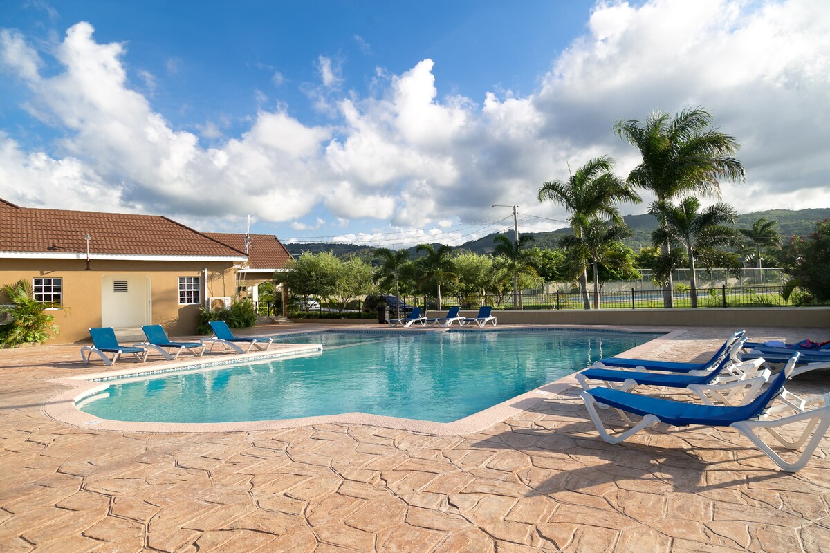 Pool, gym, tennis courts and clubhouse are a few of the amenities that you will enjoy when staying at this beautiful 2BD/2BTH townhouse . It's the perfect location to experience the best of Jamaica. Less than 13 minutes drive to Mystic Mountains, Dunn's River, and Dolphin Cove. Located 11 mins from Bamboo Blu Beach (****Beach Hours are 10 AM to 10 PM***) and 6 minutes from Scotchies Jerk. Perfect for a romantic couples getaway or family fun for everyone.