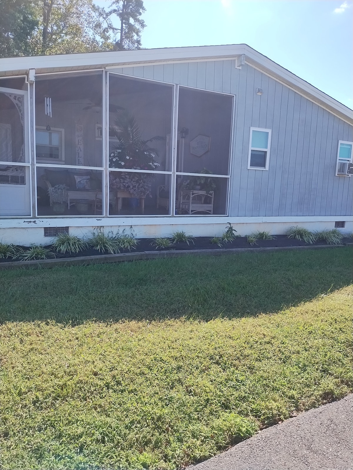 Escapada de vacaciones en 20 acres. 1100 pies cuadrados envuelven un porche cubierto con vistas a un estanque privado de 3/4 acre. El estanque está bien abastecido con lubina y róbalo para una fácil captura. Gran hoguera con bancos de troncos entre la casa y el estanque. ¡Gran sistema de sonido! Los huéspedes pueden conectar su dispositivo al sistema de sonido y disfrutar de su música dentro y fuera. El estanque incluye un bote de remos y hay chalecos salvavidas en el granero. La planta baja tiene nevera, mesa de billar, tablero de dardos y otros juegos para nuestros huéspedes.
