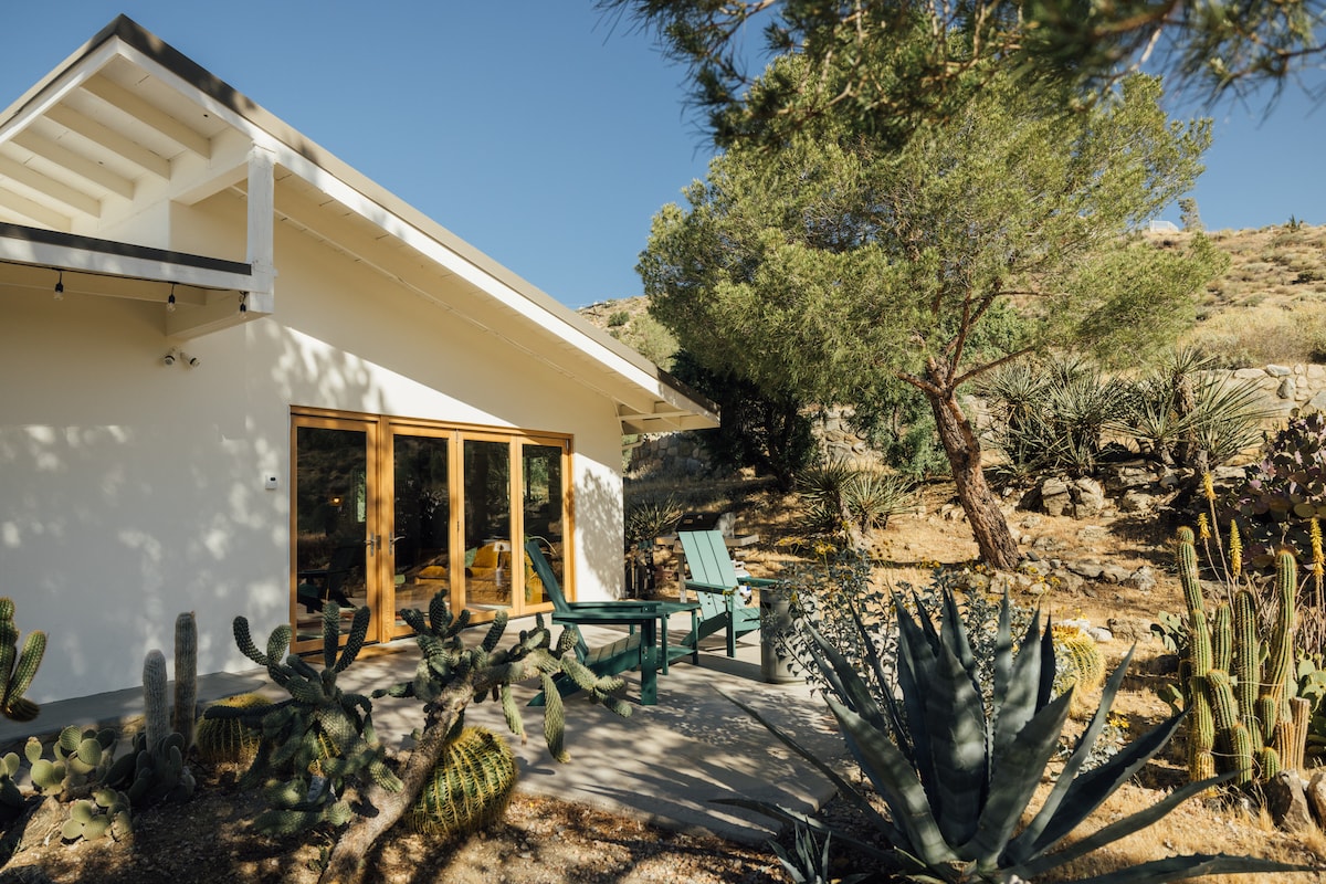 Te damos la bienvenida a Mockingbird Villa, un oasis de mediados de siglo ubicado entre Palm Springs y Joshua Tree. Ubicado a un tiro de piedra de Big Morongo Canyon Preserve, este escondite de ensueño ofrece un asiento en primera fila para más de 200 especies de aves migratorias, además de conejos, ardillas y mariposas. Ubicado en la ladera rodeada de un jardín de cactus y suculentas, los huéspedes pueden escapar de la fría y bulliciosa ciudad para disfrutar de los amaneceres de la mañana tomando café en el patio y las noches frescas contemplando las estrellas en el jacuzzi.