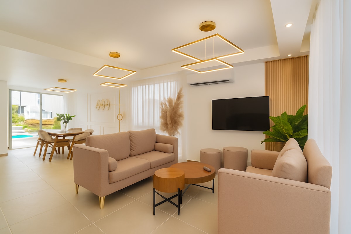 Hospédate en Punta Cana Village, una comunidad segura y exclusiva a solo 3 minutos del aeropuerto y a 10 minutos caminando. Este apartamento de 3 dormitorios y 3 baños ofrece aire acondicionado, Wi-Fi de alta velocidad, cocina totalmente equipada y dos estacionamientos seguros. Relájate en la piscina del residencial o deja que los niños disfruten del patio de juegos. Cerca de Blue Mall, Supermercado Nacional, restaurantes, bares, bancos y lavandería—todo lo necesario para una estancia perfecta.