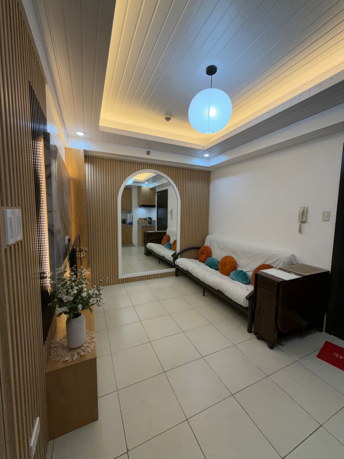 Moderno y espacioso 1BR con balcón y piscina a pocos kilómetros del aeropuerto y a pocos pasos de numerosas atracciones en el área de la bahía de Manila. Cocina bien equipada, sala de estar iluminada por el sol, cama cómoda, wifi, Netflix, aire acondicionado y TV tanto en la sala de estar como en el dormitorio. Alojamiento perfecto para parejas, familias pequeñas o viajeros de negocios. Sauna y área de juegos para niños - de uso gratuito Piscina: gratuita para un máximo de tres huéspedes; P200 por cada huésped adicional.