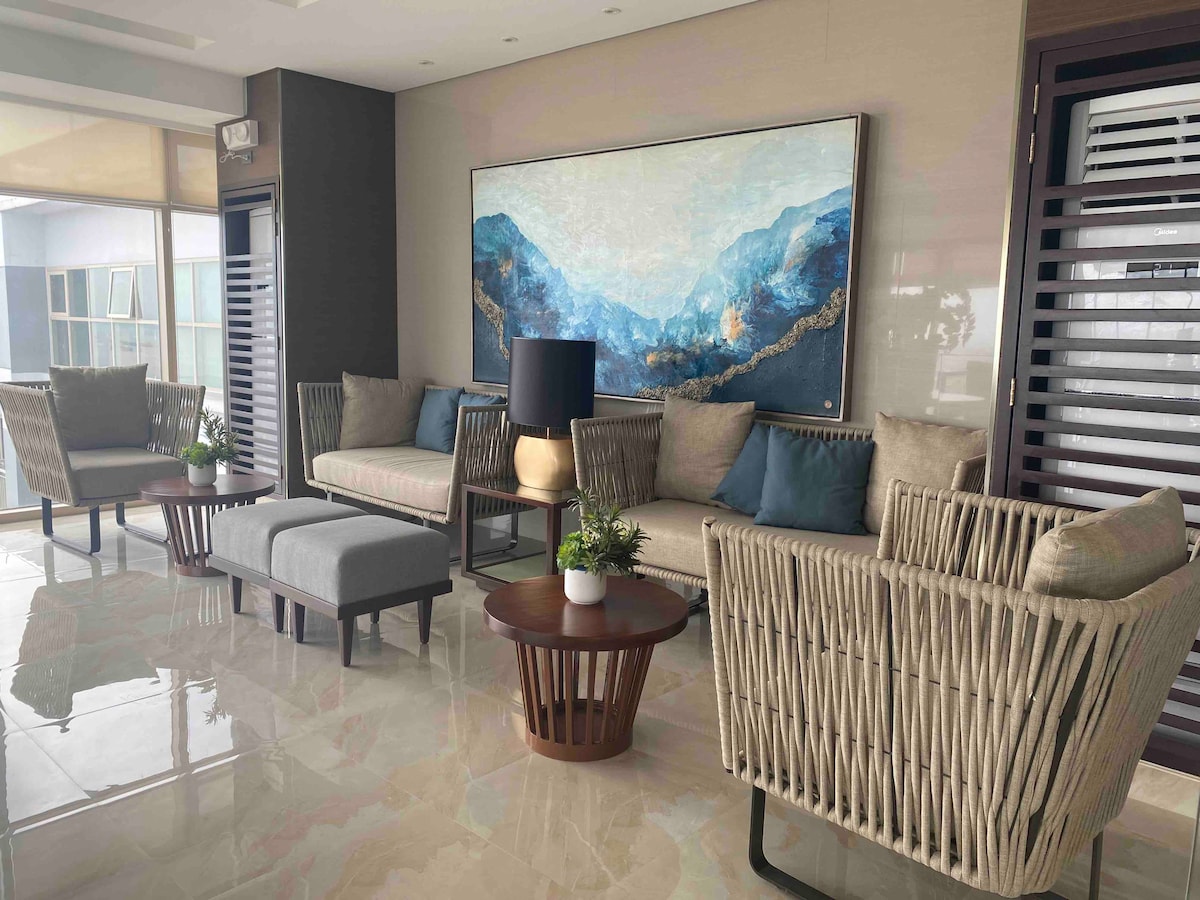 Moderno y espacioso 1BR con balcón y piscina a pocos kilómetros del aeropuerto y a pocos pasos de numerosas atracciones en el área de la bahía de Manila. Cocina bien equipada, sala de estar iluminada por el sol, cama cómoda, wifi, Netflix, aire acondicionado y TV tanto en la sala de estar como en el dormitorio. Alojamiento perfecto para parejas, familias pequeñas o viajeros de negocios. Sauna y área de juegos para niños - de uso gratuito Piscina: gratuita para un máximo de tres huéspedes; P200 por cada huésped adicional.