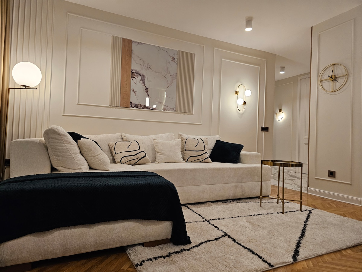 El nuevo apartamento de lujo Walnut se encuentra en el centro estricto de Belgrado, a 50 pasos de la plaza de la República en la zona peatonal. Diseñado y ejecutado de acuerdo con los estándares modernos. Hay dos dormitorios y una sala de estar con una cocina que está equipada con una nevera, lavadora, tostadora... El apartamento está equipado con sistema de aire acondicionado interno. El wifi es gratuito. Hay un gran número de boutiques de recuerdos, restaurantes y cafeterías alrededor. Bienvenido a Belgrado.