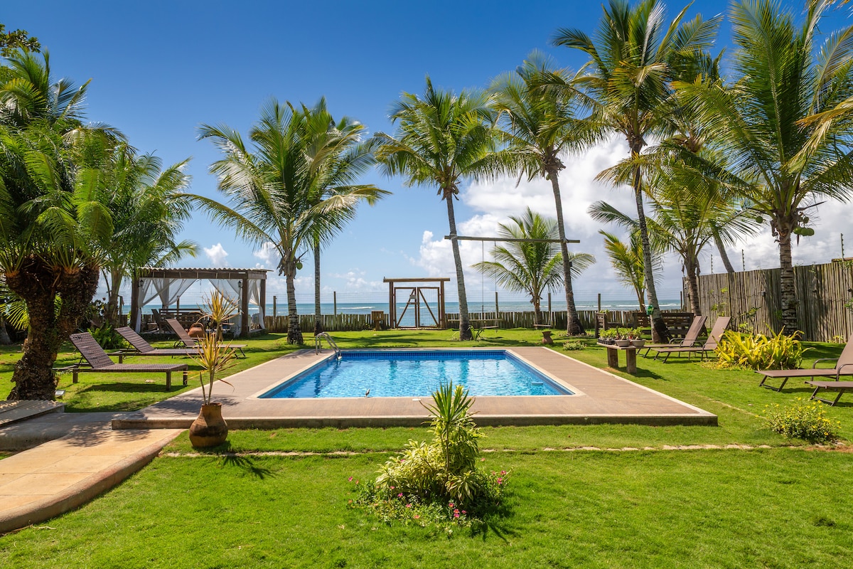 Desconecta de la rutina en este alojamiento único y relajante. Elegante casa de playa de 2 dormitorios con hermosos detalles de madera. Perfecta para una escapada romántica en pareja, pero también con espacio suficiente para una familia o para 4 amigos. La casa de playa se encuentra en una granja de cocos con acceso privado a la playa. A solo unos pasos del océano de la relajada 4ª playa (4ª praia) en Morro de São Paulo.