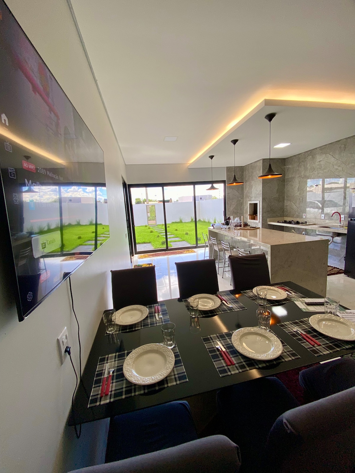 Casa com estilo e única, toda climatizada, espaçosa, com tv e ar condicionado, Cozinha Completa com eletrodomésticos, área de lazer c/ churrasqueira, mesa de jogos e piscina, segurança com guarda na porta, estacionamento p/ 2 carros, tv 60 polegadas na área da piscina.