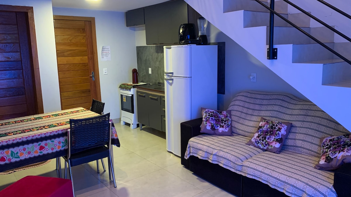 Acogedor 🌴 loft en Jardim das Palmeiras: ¡comodidad y practicidad en Campo Novo do Parecis! Lo ✨ que te encantará aquí: ✔ Cama cómoda y ropa de cama suave para noches refrescantes ✔ Cocina compacta y equipada** (estufa, refrigerador, microondas y utensilios) para preparar tus comidas. ✔ Wifi rápido y TV inteligente para el entretenimiento. ✔ Ubicación inmejorable: cerca de supermercados, farmacias y tiendas, lo que hace que tu vida diaria sea más fácil