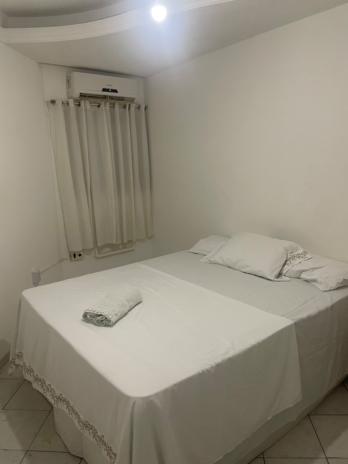 Apartamento de 62 metros con dos dormitorios con aire acondicionado, uno de ellos una suite, cada dormitorio con una cama doble, una individual, dos baños, sala de estar y cocina completa, una plaza de estacionamiento, piscina hasta las 22:00 h, no aceptamos mascotas, calle asfaltada, lugar muy seguro, bien ubicado y muy bien cuidado, ven a disfrutar de tus vacaciones, voltaje de energía en todo Maranhão 220 W