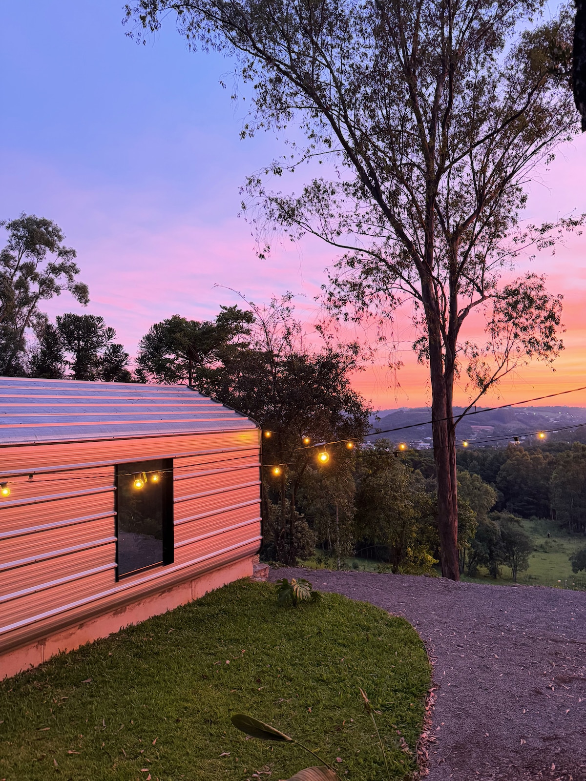 La Cabaña ALBA se encuentra en Colonia Cavagnoli, un emprendimiento familiar que preserva la naturaleza en el centro de Flores da Cunha. La palabra ALBA viene del italiano, y significa amanecer, el primer momento de claridad antes del amanecer. Esta es la vista que te ofrece la Cabaña Alba: la luz del sol reflejada en el valle verde de nuestra propiedad. Abraza la sencillez de la naturaleza sin renunciar a la comodidad en la cabaña ALBA, a 2 minutos de la plaza central de Flores da Cunha.