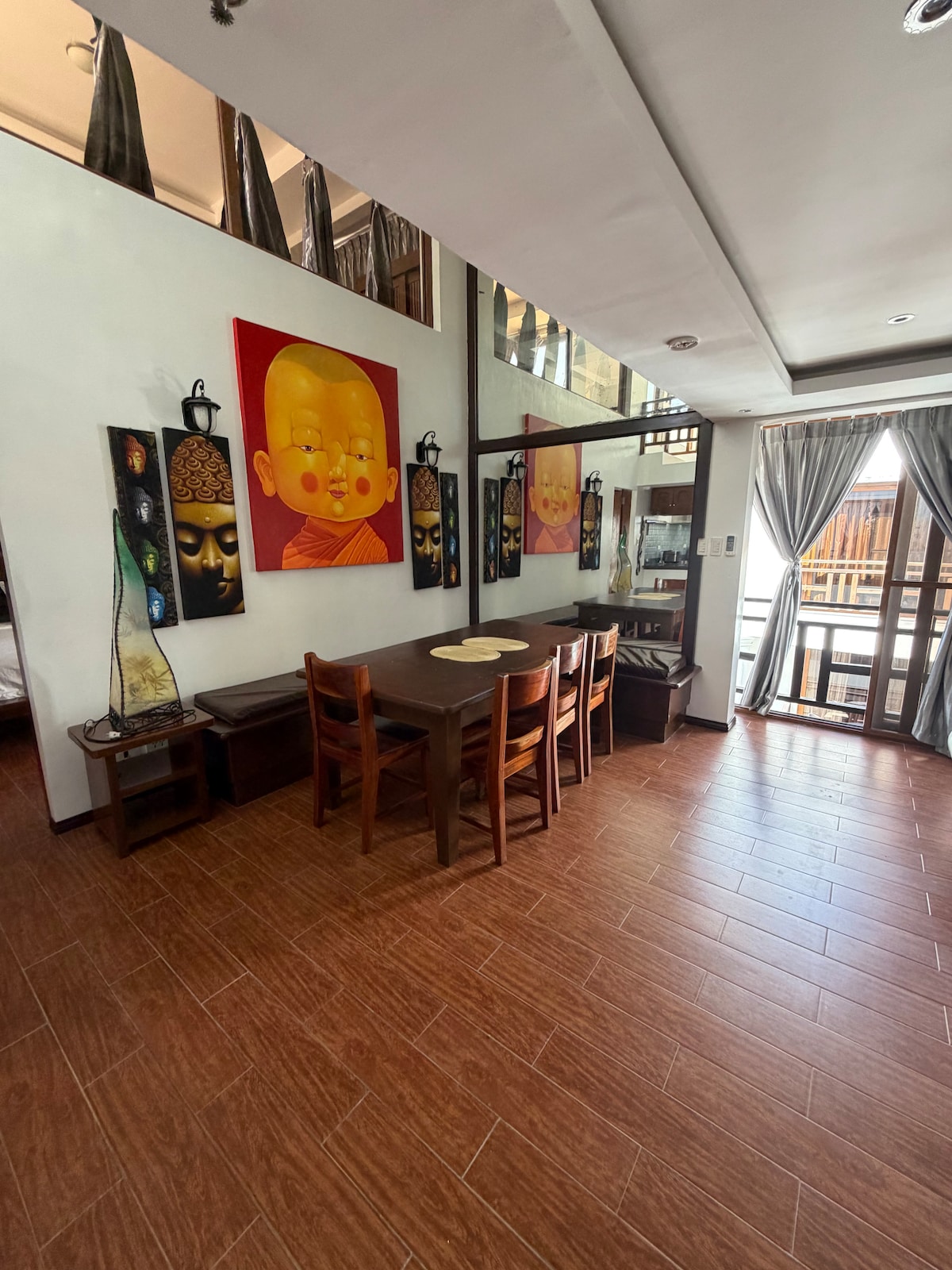 Disfruta del espacio, la serenidad y las vistas a la cima de la colina sobre Boracay. Estamos ubicados en AltaVista de Boracay Hotel & Leisure Residences. Tu estancia incluye servicio de traslado gratuito del centro vacacional para estancias cortas de AVB a White Beach, acceso a la piscina (primeras 24 horas), seguridad, generador y acceso a la casa club. Estamos a poca distancia caminando de Puka Beach, a 5 minutos en auto de City Mall, a 10 minutos en auto de White Beach Station 1 y a 15 minutos en auto de Station 2 D'Mall. Se proporcionan toallas de baño, toallas de playa y alfombrillas de playa en la unidad.