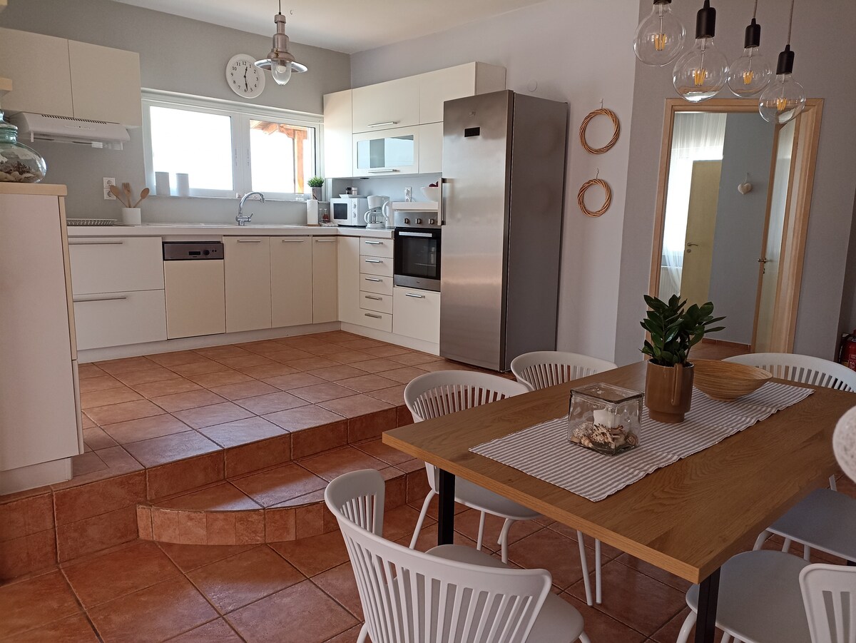 *Envía un mensaje ANTES de reservar. Anuncio en muchos sitios y es posible que mi calendario no esté actualizado. Suelo responder en menos de 1 hora* • ¡Increíble playa y mar de Stavros justo delante de ti! • Piscina ecológica (5 m x 10 m) con sal sin cloro y zona de hidromasaje. •BBQ • Jardín grande. • A poca distancia a pie de un minimercado, restaurantes y parada de autobús. • Parque infantil y cancha de baloncesto. • Tenis de mesa y futbolín. • Wifi. • 4 bicicletas disponibles. • A 10 km del casco antiguo de La Canea. • A 10 km del aeropuerto de La Canea.