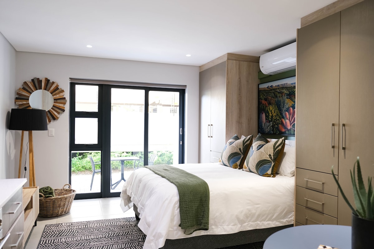 Situada en el centro de la hermosa ciudad de Stellenbosch, esta casa de campo con jardín está a pocos pasos de restaurantes, tiendas, bares y numerosas cafeterías. Ubicada en un callejón sin salida justo al lado de la histórica calle Dorp, está idealmente ubicada para disfrutar del centro de la ciudad. Luminoso y tranquilo, Studio 6 cuenta con una zona de comedor al aire libre privada, Internet de fibra seguro con estación de trabajo dedicada, así como energía de respaldo para luces e Internet. Las estancias más largas incluyen una limpieza semanal con ropa de cama limpia.
