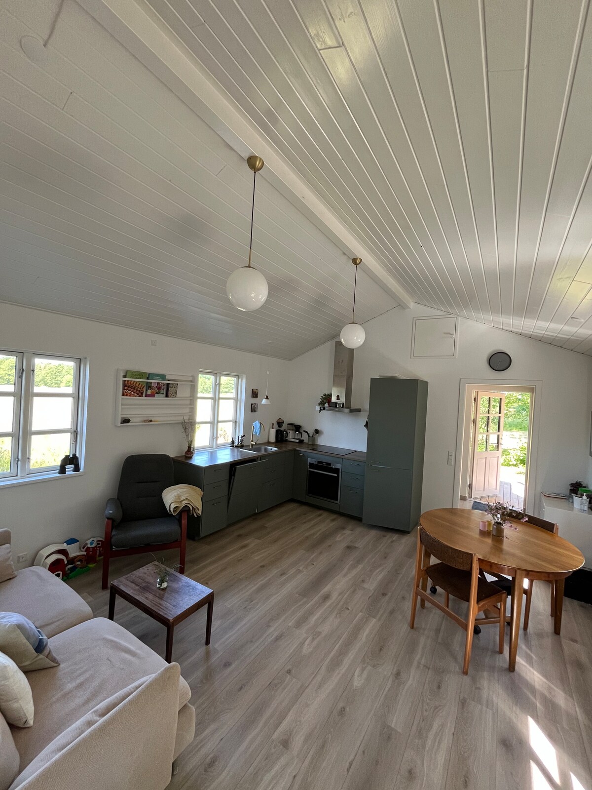Visita nuestra pequeña casa de huéspedes. Nos alojamos allí mientras renovábamos nuestra granja, que está a 25 metros de la casa de huéspedes, separada por árboles. Es tranquilo y pintoresco, y está ubicado con hermosas vistas a los pastizales con animales salvajes y aves. Se tarda unos 10 minutos a pie en llegar al lago Sorø y 15-20 minutos a través del bosque a Parnas, una zona de baño familiar con sombra y un puente para nadar. Parnasvej y el ferrocarril se pueden escuchar de fondo cuando se está sentado afuera. No nos molesta.
