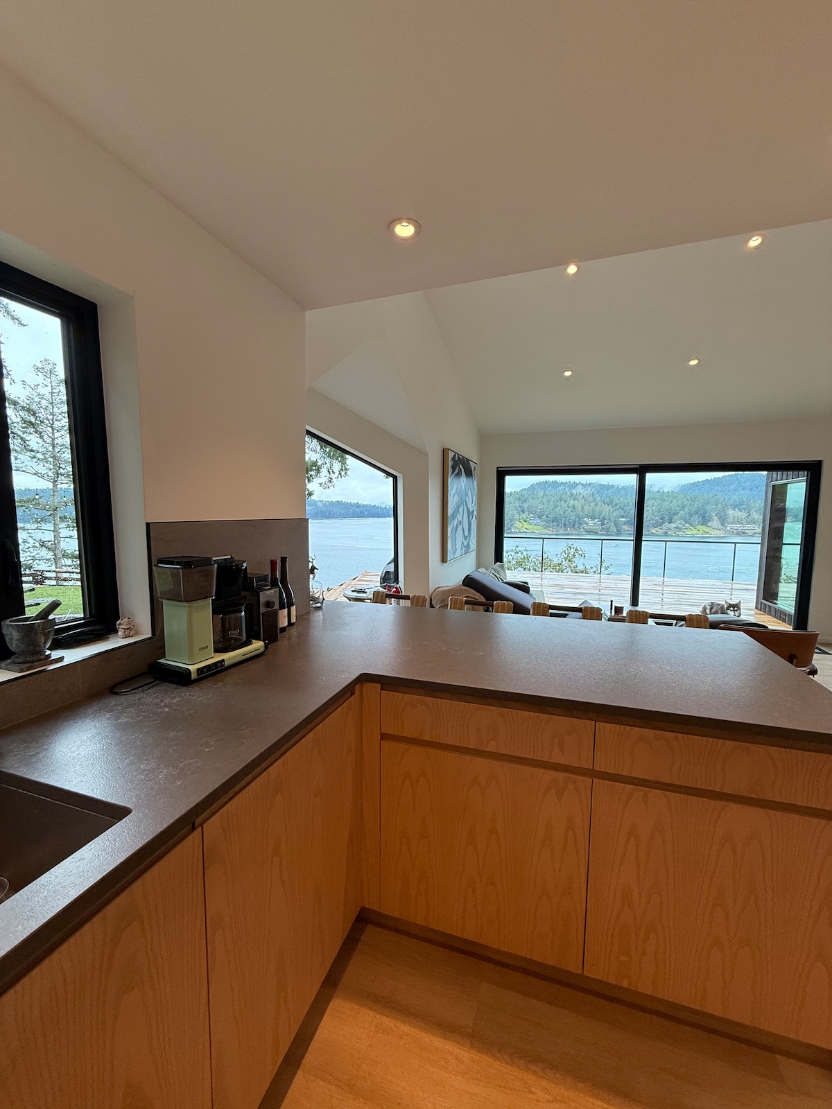 VISTAS AL MAR Y A LA MONTAÑA con JACUZZI Y SAUNA DE BARRIL DE MADERA Suite St. Mark's Summit: la mejor para ver el amanecer, con enormes ventanales que ofrecen vistas panorámicas de West Van y Vancouver. La suite está unida a la casa, pero tiene su propia entrada exterior, cama tamaño queen, baño con ducha de efecto lluvia, TV de pantalla plana y cocina americana. Capacidad para 2 personas. ¡No hay mejor lugar para disfrutar de un café por la mañana o una copa de vino al atardecer para empaparse de las vistas! A menudo nos visitan águilas, ciervos y, si tienes suerte, ¡ballenas!