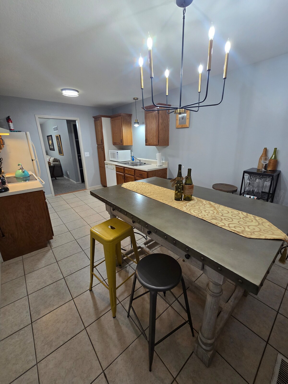 Contempla el impecable ayuntamiento con la Estatua de la Libertad y una escultura de bronce que marca la ciudad donde el Honesto Abe visitó justo antes de anunciar su candidatura a la presidencia. Los ladrillos originales y la madera de esta casa única de 170 años han sobrevivido al paso del tiempo. Sube en ascensor (o por las escaleras) hasta el segundo piso. Situado en el corazón del centro histórico de Leavenworth, la primera ciudad de Kansas. A pocas manzanas hay varias cafeterías, panaderías, boutiques y bares. Ubicado a solo 10 millas de la galardonada ciudad turística de Weston, que tiene muchas cervecerías, bodegas y rutas de senderismo. ¡No encontrarás esto en ningún otro lugar! Suelos originales y amplios pisos de madera que se colocaron hace 165 años y paredes de ladrillo originales que han resistido el paso del tiempo. Una vista desde nueve ventanas que dan a nuestro prístino ayuntamiento con la estatua de la libertad y la estatua de Abraham Lincoln. (¡Lincoln anunció su candidatura a la presidencia allí mismo en Leavenworth!) ¡Y pensar que lo más probable es que cruzara la calle y entrara en nuestro edificio, ya que era un salón en ese momento! Entrarás en nuestro loft desde la calle mediante un teclado y hay una pequeña habitación que conduce a nuestro nuevo ascensor (gran puerta de acero) para llevarte al segundo piso. Las instrucciones para el ascensor están en la pared. Muy fácil, solo cierra siempre la puerta blanca de acordeón del ascensor en caso de que tu grupo lo llame desde otro piso. Tu grupo es la única persona que tiene acceso a este ascensor. La hora de llegada es entre las 16:00 y las 19:00 horas. Envíanos un mensaje de texto si no es en ese plazo. La salida es a las 11:00 h. Una vez más, ¡envíanos un mensaje de texto si necesitas más tiempo! Mac y Stacy siempre están a solo un mensaje de distancia y pueden estar allí en 10 minutos. #913-651-7798. ¡Envíanos un mensaje de texto si tienes alguna pregunta! Sube en un ascensor personalizado al espacio abierto pero acogedor sobre la boutique de velas y regalos del anfitrión. El apartamento es una base estupenda para explorar Kansas City, Fort Leavenworth, la sede del condado y la pintoresca Weston, Missouri. Tiendas, restaurantes, cafeterías y bares están a solo unos pasos. Hay un gran aparcamiento detrás del edificio en la calle 5. Televisor de 65 pulgadas, pero no tenemos cable. Hay un reproductor de DVD y puedes conectar tu teléfono al televisor para ver tus vídeos, Hulu, etc. ¡Eso es lo que hacemos, y usamos los datos de nuestro teléfono u ordenador para mostrarlos en la pantalla del televisor!