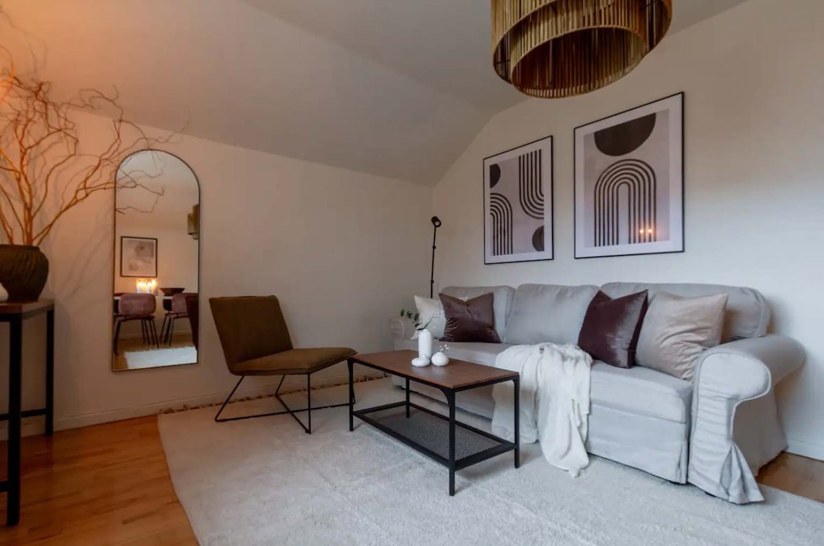 Un apartamento luminoso y cómodo de 1 dormitorio con balcón, ubicado a solo 20 minutos del centro de Estocolmo en metro. Con más espacio (53 m²), una cocina independiente y un mobiliario acogedor, este departamento es superior a los alojamientos típicos para viajeros de negocios, ideal para huéspedes que buscan comodidad y confort.