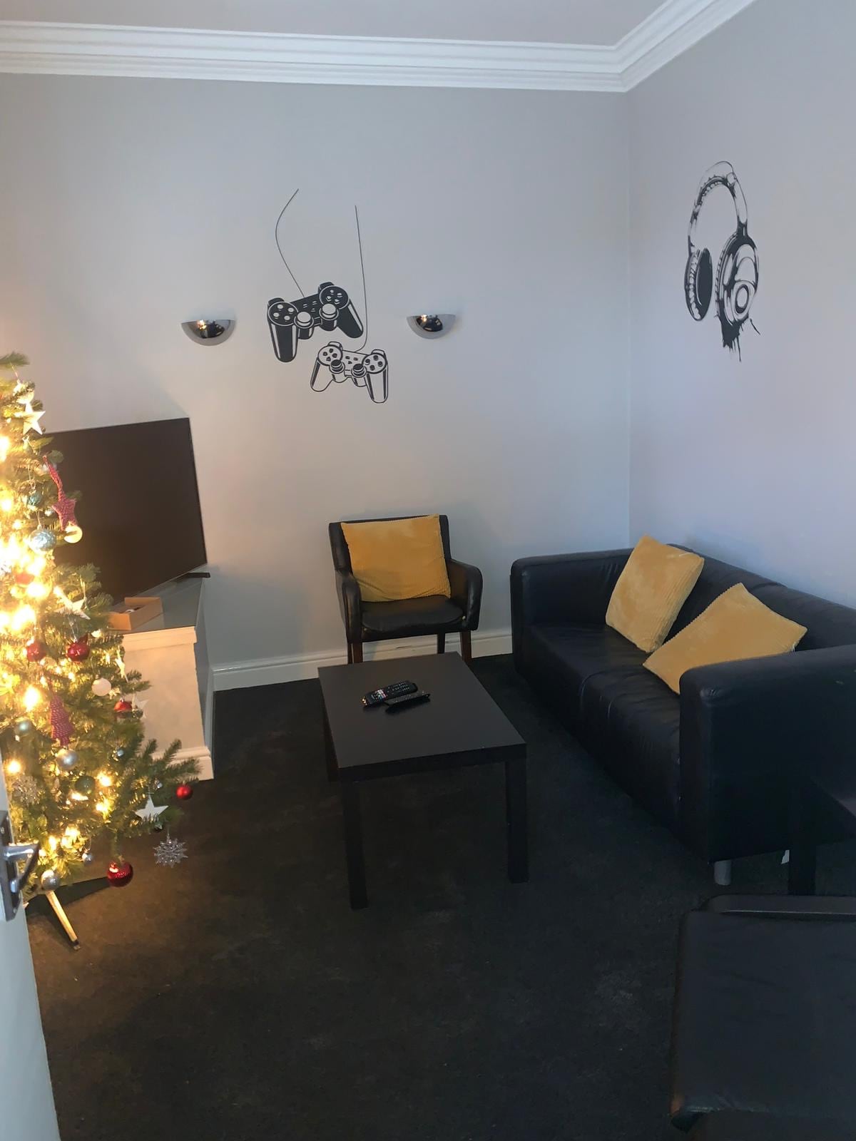 Decoración moderna de estilo peculiar en esta casa de 3 dormitorios. TAMBIÉN ofrece *carga de vehículos eléctricos. Perfecto para familias/grupos. El dormitorio principal tiene una cama tamaño king y un espacio de oficina compensado. 2 habitaciones dobles que dan flexibilidad. Baño con bañera/ducha. Aseo adicional en la planta baja. Salón/comedor con cómodo sofá de 3 plazas y 3 sillas. Cocina totalmente equipada con microondas, lavavajillas, lavadora y elementos esenciales. Jardín trasero cerrado con cubierta y zona de guijarros. Cerca de la estación, el centro de la ciudad y el teatro.
