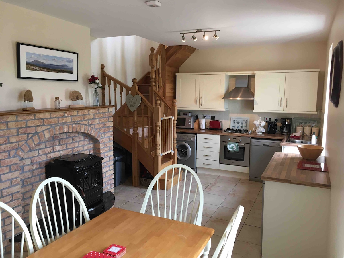 Escápate a una tranquila casa de campo cerca de Belmullet en la Wild Atlantic Way. Ubicado en el tranquilo pueblo de Cornboy/Rossport, este acogedor refugio está rodeado de impresionantes playas y espectaculares acantilados. A solo 20 minutos de la ciudad de Belmullet, con restaurantes, bares y encanto local. Explora joyas cercanas como Ceide Fields y Downpatrick Head. Perfecto para parejas, familias o viajeros solitarios que buscan paz y belleza natural.