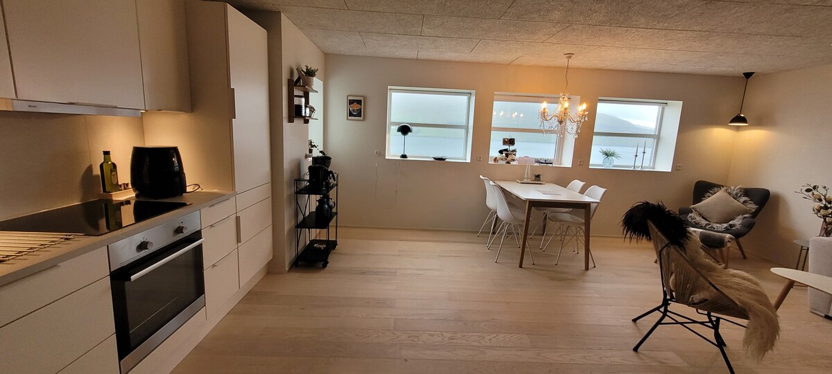 Welcome to our luxurious penthouse located in the heart of Tórshavn. This exquisite apartment offers a blend of modern elegance and breathtaking views that will leave you mesmerized. It features a fully equipped gourmet kitchen, a relaxing spa with Jacuzzi and steam bath. Beyond the spa, the penthouse offers an exquisite living space, elegantly furnished. Whether you're visiting Tórshavn for business or pleasure, this luxury penthouse provides the ideal accommodation for an unforgettable stay.