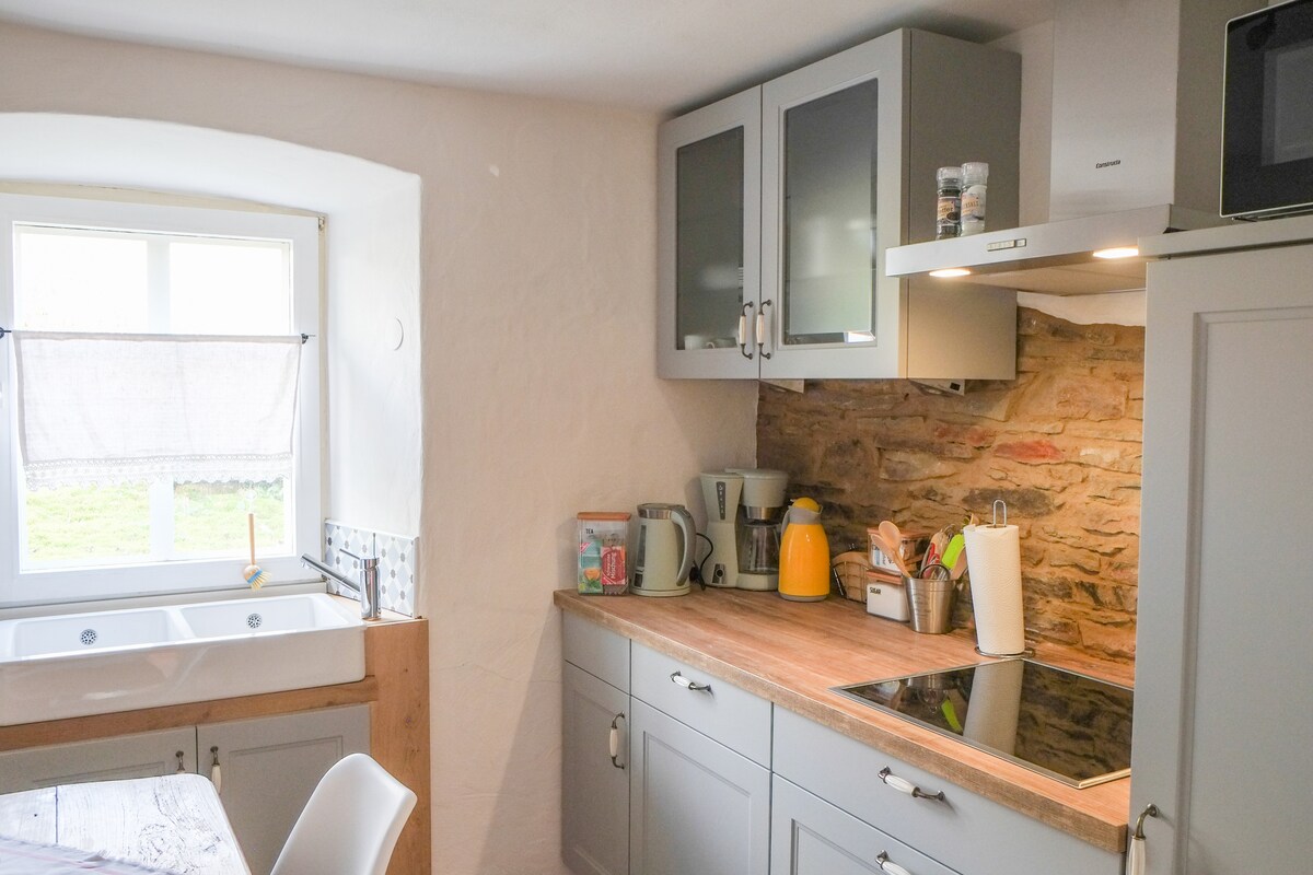 Mijn man en ik bieden aan: een ruim (90m2) appartement van alle gemakken voorzien op tuinniveau. Aan de rand van een klein dorpje in de Eifel, met vrij uitzicht over het agrarische heuvellandschap met bossen. Onderkomen is niet geschikt voor kleine kinderen. Rust en ruimte! Eigen parking en entree. Terras en tuin (2000m2). Honden zijn welkom. (laat ons weten bij boeking) We serveren GEEN ontbijt.