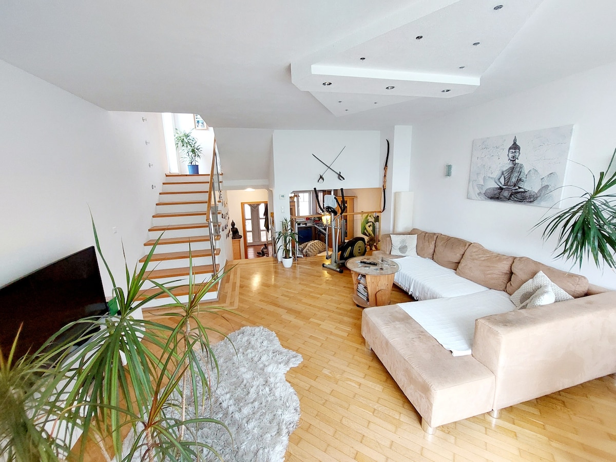 El loft con jardín está situado en el centro de Murau, directamente en el paseo marítimo de Mur. En 2 plantas (aprox. 80 metros cuadrados) ofrece una amplia sala de estar, comedor y 2 dormitorios. Destacan el frente de vidrio continuo con vistas al Mur y al jardín, así como la terraza cubierta con zona de estar y mesa de comedor. En la primera planta se encuentra el dormitorio principal (cama doble, puerta incluida). En el segundo piso hay más posibilidades para dormir: 1 cama doble y 2 camas individuales (litera), ambas en el espacio abierto.
