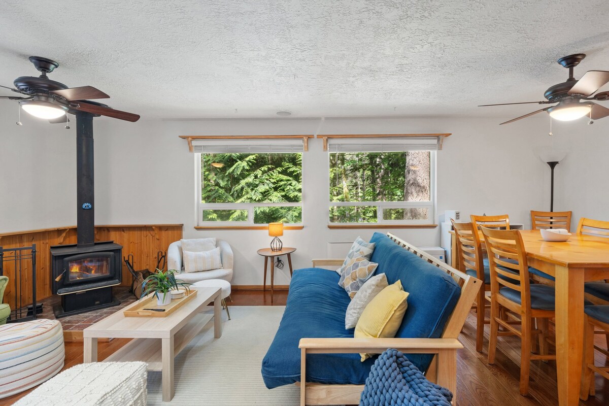 Relájate en este elegante y sereno refugio en el bosque, tu campamento base perfecto para la aventura o la relajación. Ubicado en un entorno forestal tranquilo, está a solo unos pasos de un sendero panorámico de la reserva natural y cerca de millas de senderismo y ciclismo de montaña. Después de un día de exploración, relájate con comodidad y disfruta de los tranquilos alrededores. En invierno, disfruta de las pistas en el monte Hornea o cruza la frontera para un día de esquí en Cypress Mountain. Una escapada acogedora y moderna con acceso durante todo el año a lo mejor de la naturaleza.