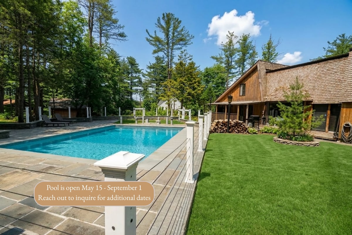 Relájate en este refugio privado de 2 acres en Lake Sheldrake, que cuenta con piscina (de temporada), cancha de tenis completa, chimenea y está cerca de senderos locales. Perfecta para reuniones inolvidables con familiares, amigos o para retiros de negocios, esta espaciosa cabaña ofrece múltiples áreas de estar, una cocina moderna con todos los servicios y muchas camas para todos (más de 18 huéspedes). A solo minutos de Bethel Woods, Resorts World Casino y Monticello Raceway, esta joya escondida combina encanto rústico con comodidad moderna en el corazón de Catskills.