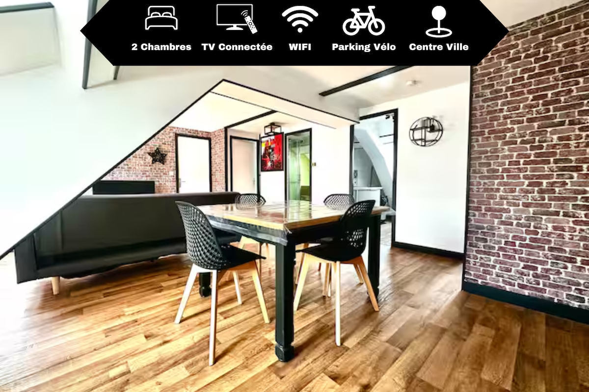 Appart' le Kozi - Centre-Ville - 5 mins à pied de la gare Entièrement rénové, chaleureux et proche de toute commodités. Vous propose 2 chambres avec literie récente (lit double en 140) et chacune équipée d'une salle d'eau individuelle. Une pièce de vie avec sa cuisine toute équipée pour votre confort. Places de parking proches. Lits faits/serviettes de bain fournies. Plus qu'à poser vos valises. Arrivée autonome par boite à clefs. (Lit bébé + chaise haute sur demande) WIFI GRATUIT