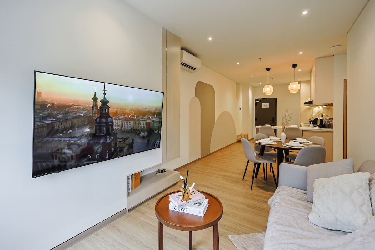 Abre las cortinas del dormitorio por la mañana para revelar una impresionante vista de la ciudad, una vista que también podrás disfrutar desde un práctico escritorio. Los relajantes tonos topo y gris mantienen una sensación sofisticada. Los detalles modernos del baño y la cocina lo convierten en un punto de partida ideal para explorar. Mi apartamento de servicio de un dormitorio de aproximadamente 900 pies cuadrados está totalmente amueblado y equipado con aire acondicionado, con sala de estar, comedor, cocina y dormitorio integrados. Sala de estar: cómodo sofá de 3 plazas, sillón reclinable y TV de pantalla plana para que los huéspedes disfruten de un lugar cómodo donde pasar su tiempo libre. Cocina: ¿Te apetece preparar tu propia comida? No te preocupes, esta cocina moderna y bien equipada tiene todo lo que quieres para preparar tu comida, ya sea para ti o para tu pareja. No te sorprendas de que incluso tenga una lavadora que viene con secadora incorporada. Comedor: una mesa de comedor sencilla y acogedora adyacente a la cocina para servir cómodamente. No dudes en preparar tu propia comida y disfrutar comiendo aquí, así como para compartir una risa y fortalecer las relaciones. Dormitorio: el lugar donde te escondes al final del día para descansar, relajarte antes de dormir. Esta espaciosa y cómoda habitación cuenta con cama tamaño king, vestidor y escritorio, TV de pantalla plana y también acceso privado a un magnífico baño que te ofrecerá un entorno de descanso inolvidable. Por último, pero no menos importante, se proporciona acceso gratuito a internet por wifi para que los huéspedes lo utilicen en mi apartamento y puedan mantenerse en contacto con amigos y familiares o encargarse de sus negocios en cualquier momento. Las instalaciones comunes del Sky Gym, ubicadas en el piso 39, la piscina infinita, las salas de juegos y el parque infantil en el piso 5 que funcionan todos los días de 7:00 a 22:00 h. Pregunta todo lo que quieras. El apartamento se encuentra en el Fraser Residence Hotel, en el centro de Kuala Lumpur. Está a 800 metros de las Torres Petronas y del centro comercial Suria KLCC. En cuanto a la comodidad, la tienda de comestibles está a solo un minuto, el transporte público no solo se puede llegar en unos minutos a pie como la estación de monorraíl Bukit Nanas (5 minutos) y la estación de tren ligero Dang Wangi (7 minutos), sino que los huéspedes también pueden llegar a pie al cercano Centro de Turismo de Malasia (7 minutos), Torres Petronas (18 minutos), Hard Rock Café (8 minutos), Torre de Kuala Lumpur (29 minutos) y muchas otras atracciones. También hay un servicio de autobús público (GOKL City Bus) que ofrece a los pasajeros viajes gratuitos para los viajeros dentro del distrito central de negocios de Kuala Lumpur. Te invitamos a viajar a algunos de los lugares populares como Pavillion, Bukit Bintang, Petronas Twin Tower, Pasar Seni y muchos más... Ofrecemos limpieza gratuita (una vez a la semana) a aquellos que se alojen durante 7 noches o más, que incluye cambio de sábanas, toallas y limpieza básica. (Bajo petición, con un día de antelación) El apartamento se encuentra en 188 Suites en el centro de Kuala Lumpur. Está a 800 metros de las Torres Petronas y del centro comercial Suria KLCC.