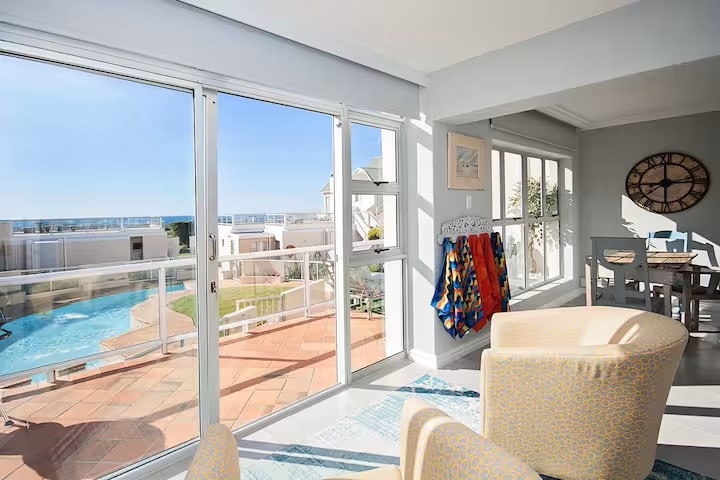 Complejo seguro a poca distancia de la playa. Decoración y servicios elegantes, una cocina totalmente equipada, wifi y dstv ilimitados, piscina de diseño único, braai incorporado en el balcón con hermosas vistas al mar. ¡Una terraza en la azotea para disfrutar de la vista o leer tu libro! Tres dormitorios grandes, todos con baño privado y un inodoro para huéspedes. ¡Ven y disfruta de un ambiente vacacional tranquilo a poca distancia del Parque Nacional Addo, el Parque del León, la Reserva de Caza Kragga Kamma y maravillosos paseos por la playa!