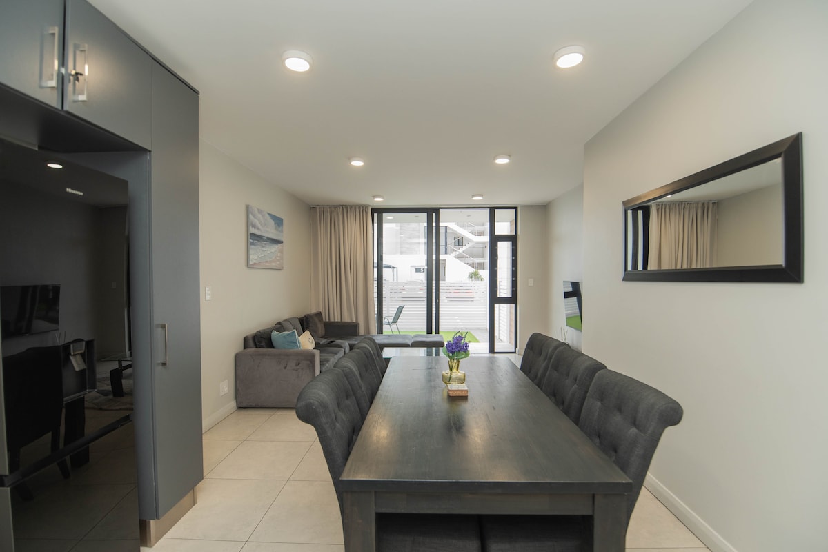 Elegante apartamento independiente con comodidades de lujo y estacionamiento gratuito, ubicado en Summerstrand, a 4 minutos caminando del paseo marítimo. El apartamento cuenta con una cocina totalmente equipada, baño moderno, amplio espacio en el armario y una estación de trabajo designada para la productividad. Relájate en el balcón o disfruta del entretenimiento en la Smart TV desde un entrenador de cuero. Ofrecemos artículos básicos de cortesía durante un máximo de dos días, incluidas cápsulas de lavandería, bolsas de basura, champú, gel de baño, café, té y azúcar.