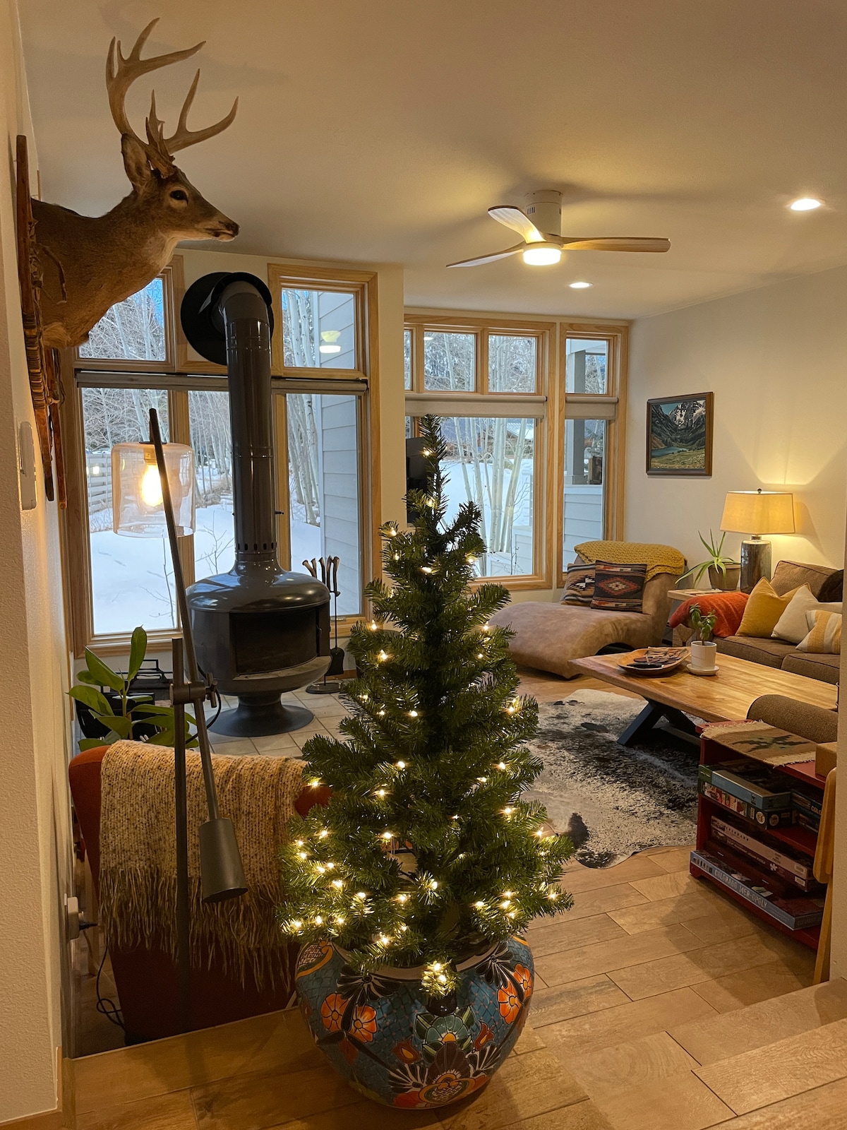 A minutos de los mejores centros de esquí de CO con vistas a un hermoso lago con vistas a la montaña, encontrarás este refugio boho de montaña remodelado y ultra acogedor. Relájate, disfruta de increíbles comodidades como una chimenea, calentador de patio, televisores nuevos, estaciones de trabajo dedicadas, wifi ultrarrápido, artículos de viaje, tablas de paddle, bicicletas de montaña y mucho más. Tiene capacidad para un total de 6 personas con 1 cama tamaño king y 1 cama tamaño queen, además de un sofá cama tamaño queen. ¡Ubicado convenientemente cerca de rutas de senderismo/ciclismo, tiendas y mucho más!