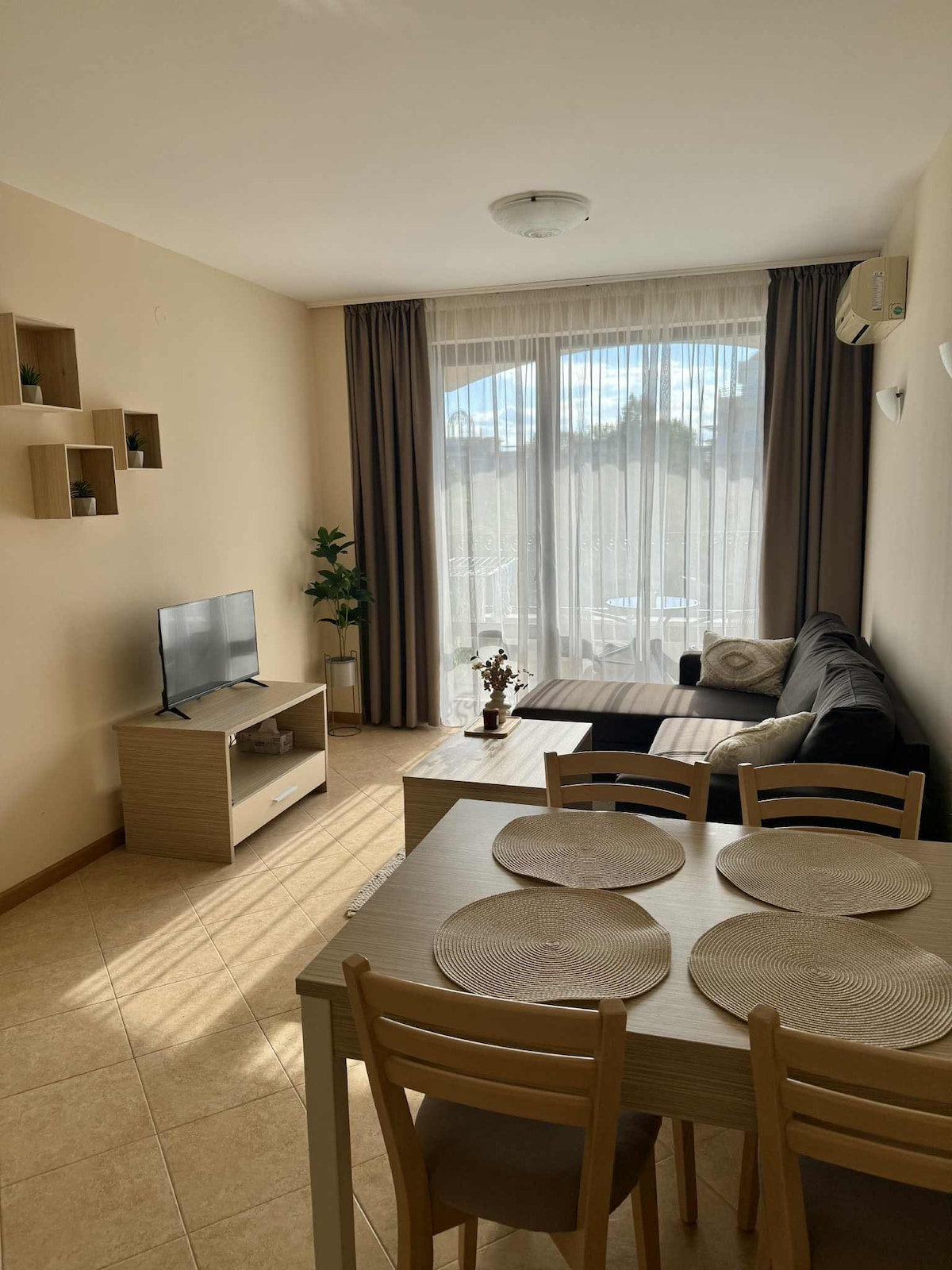 El apartamento se encuentra en el centro vacacional Sunny Beach. La playa está a solo 450 metros. Distrito concurrido, fácil acceso a la calle principal y al centro con todas las comunicaciones y lugares. El popular parque acuático no está lejos. El departamento está totalmente amueblado y equipado, tiene SU PROPIA SALIDA INDEPENDIENTE a la piscina. El territorio está bajo seguridad. La zona del parque está cerca, así como supermercado 24/7, transporte público. Al casco antiguo de Nessebar, a 10 minutos en autobús.