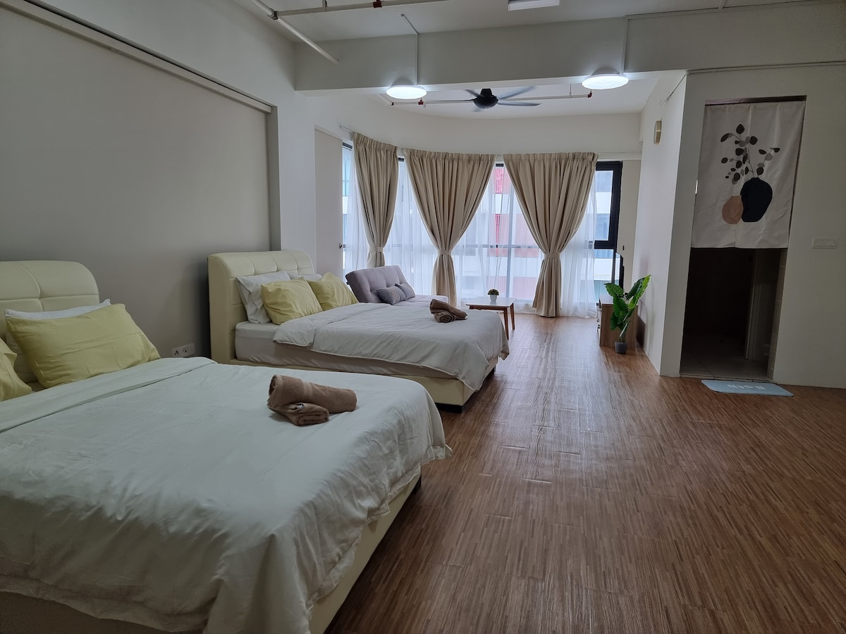 Welcome to our serene minimalist studio, where simplicity meets sophistication in a space designed for comfort and tranquillity. Ideal for solo travellers, couples or business travellers seeking a peaceful urban escape, our studio offers a sanctuary away from the hustle and bustle of city life, while still providing easy access to all the amenities and attractions including Sunway Pyramid & Sunway Lagoon Theme Park just away 15 minutes' drive.