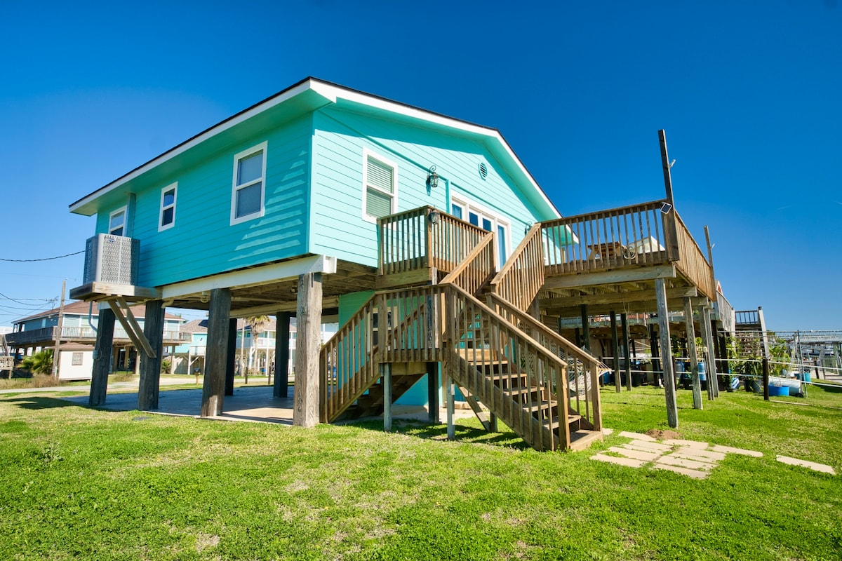 🦄 ¡ALERTA DE UNICORNIO! ¡Este lo tiene TODO! ¡Tómatelo con calma en esta escapada única y tranquila con vistas al océano! ✅Nueva construcción. ¡Nuevo olor a casa e impecablemente limpio! ✅¡JACUZZI en la terraza! ✅¡Se admiten mascotas por solo $75 hasta 2! ✅Tarifa de limpieza de solo $150 ✅Cama de día y sillas de terraza ✅ Parrilla al aire libre con propano proporcionado. ✅Bar exterior ✅Cubierta superior con fogata con propano proporcionado ✅¡Luces de hilo de fiesta en la cubierta! ✅Cerca de las tiendas. En la playa. ✅¡Bar y parrilla frente a la playa a una cuadra de esta casa!