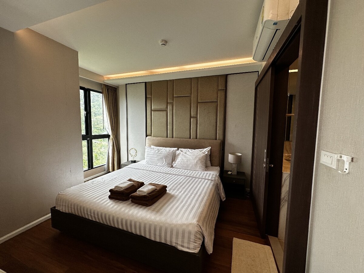 Moderno apartamento de 1 dormitorio en Citygate Kamala Beach con vistas a la selva y las montañas. A solo 10 minutos a pie (o traslado gratuito) de la playa de Kamala. Disfruta de 3 piscinas, incluida una piscina en la azotea con vistas al atardecer, además de restaurantes, cafetería, gimnasio y conserjería en el lugar. Capacidad para 4 personas con cama tamaño king + sofá cama. Wifi rápido, TV inteligente, lavadora, cocina completa y balcón privado. Ubicado en el complejo turístico Citygate, con bar en la azotea, bar en la piscina y todas las amenidades de un hotel.