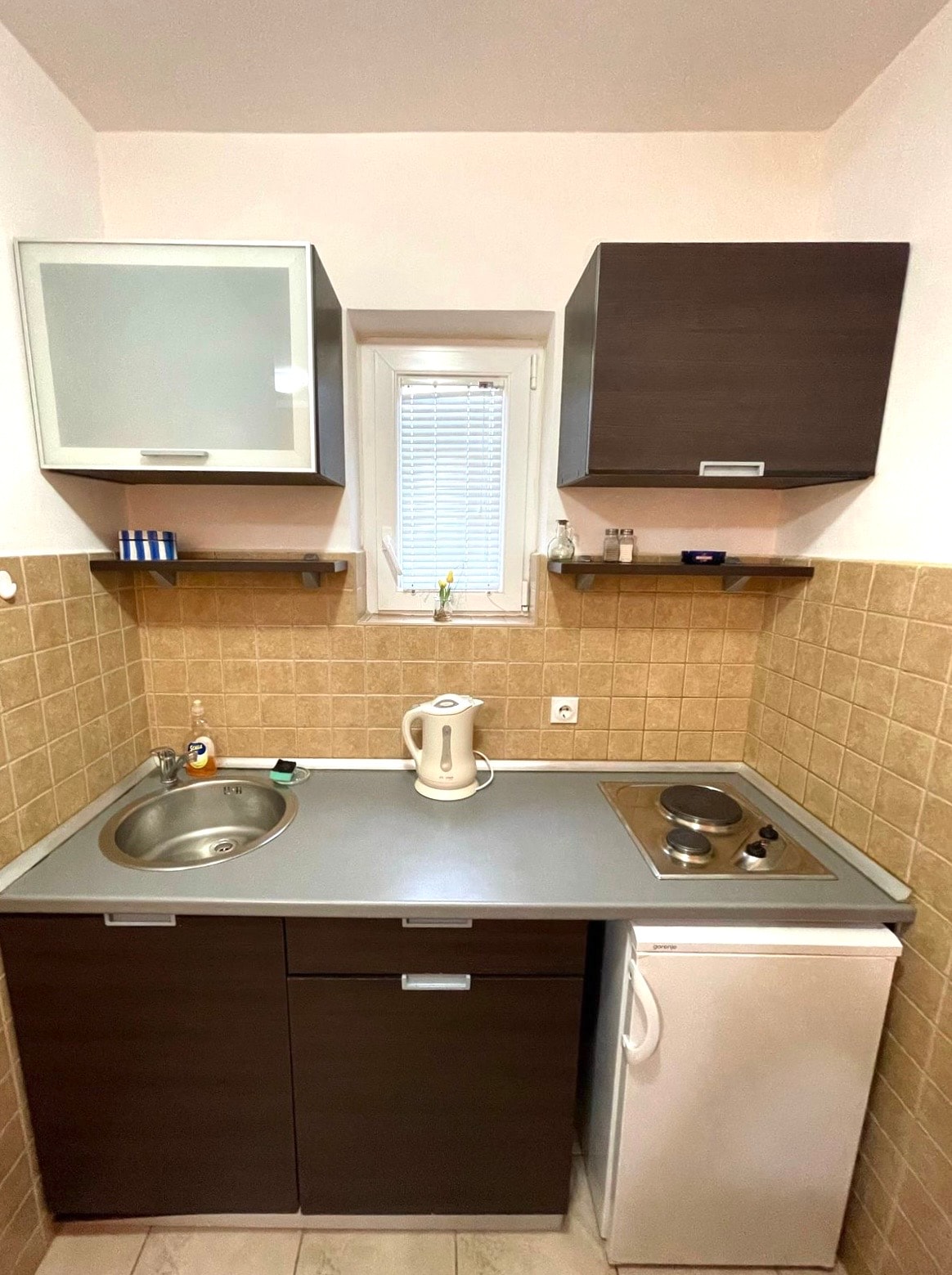 El acogedor estudio con WiFi de alta velocidad está equipado con una cama doble, baño, cocina pequeña y comedor. El departamento tiene 23 m², con 10 m² de terraza, y está situado en la planta baja, a 20 m de la playa. La playa está equipada con tumbonas, que son de uso gratuito para nuestros huéspedes. El estacionamiento es gratuito. Si necesitas un buen estacionamiento privado cerca del departamento, cuesta 7 euros por día.