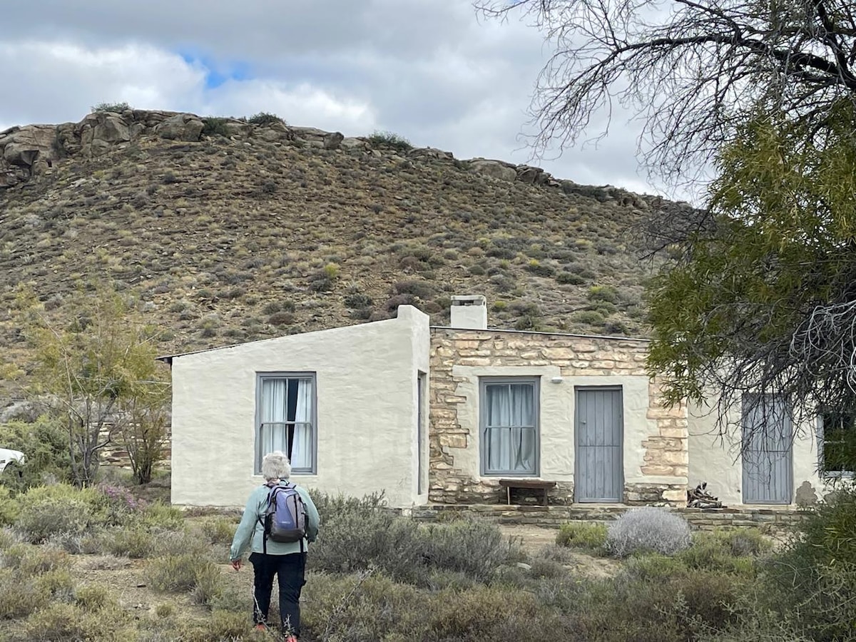 We are situated in the heart of the Karoo a 3 and a half hour drive from Cape Town. We have various game roaming around the cottage. Lovely bliss full evenings with a large fire watching the stars in a lovely hottub. Enjoy a game drive morning, during lunch with a "field braai" or late afternoon sundowner. Bring your hiking shoes or your MTB and enjoy the walk or cycling on various routes. Come relax with the whole family at this peaceful place to stay.