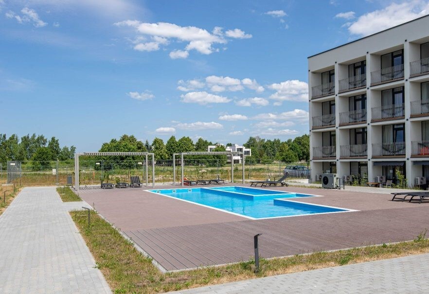 Relájate en un espacio tranquilo y elegante con un acogedor balcón. Puedes llegar al mar en solo 10 minutos a lo largo de un hermoso sendero. En el apartamento recién equipado encontrarás todo lo que puedas necesitar para pasar unas vacaciones cómodas. Si te aburres de la playa, puedes disfrutar de una piscina gratuita, canchas de voleibol y baloncesto y una zona de parrilla en la zona vallada. Encontrarás gimnasio, zonas de trabajo y de descanso en las zonas comunes del edificio. Justo al lado de la entrada hay un lugar privado para tu coche.