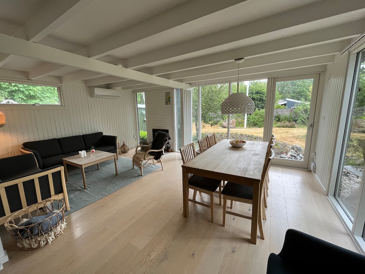Unik nyistandsat sommerhus (2022), der ligger tæt ved vand og Ebeltoft. Velegnet til familier der ønsker udeliv og natur. Seperat anneks med 5 sovepladser og eget bad og toilet. 150m2 stor terrasse med udendørsbruser, hængesofa og grill. Overdækket terrasse med terrassevarmer. Skøn ugenert naturgrund med vild skov, der lukker fint af og giver en skøn fornemmelse af naturen. 200m til strand med krystalklart vand og gode muligheder for at bade og fiske - Mols bedste strand.