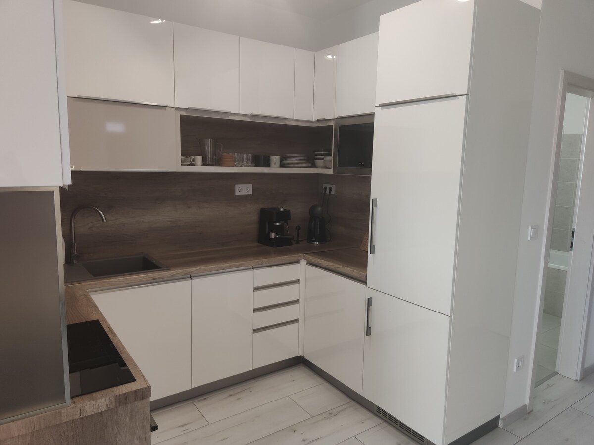 Relájate en las colinas de Zselic en un apartamento especial de 67 metros cuadrados con dos dormitorios más sala de estar y una enorme terraza de 70 metros cuadrados. Colchones de calidad para una noche de sueño reparador y persianas motorizadas para una total tranquilidad. Terraza con tumbonas, hamaca y mesa de comedor. La cocina está equipada con cafetera, hervidor de agua, lavavajillas y placa de inducción. Aparcamiento gratuito cubierto y cerrado en la planta baja. El apartamento está equipado con todos los electrodomésticos y aire acondicionado.