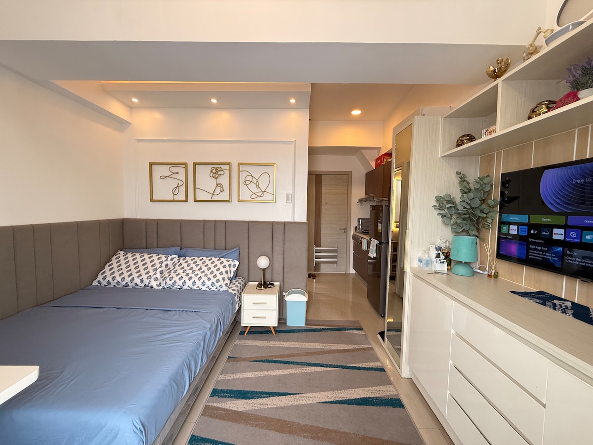Retiro moderno en estudio con balcón y vistas a la montaña – Ramos, Cebú Despiértate con impresionantes vistas a la montaña desde el piso 20 de este estudio elegantemente renovado. Diseñado pensando en la comodidad y la relajación, este alojamiento ofrece la combinación perfecta de comodidad urbana y vida serena. • Balcón privado con vistas a las montañas de Cebú. • Totalmente renovado con interiores modernos y elegantes. • Ubicación céntrica de Ramos: camina a cafés, tiendas y vida nocturna.