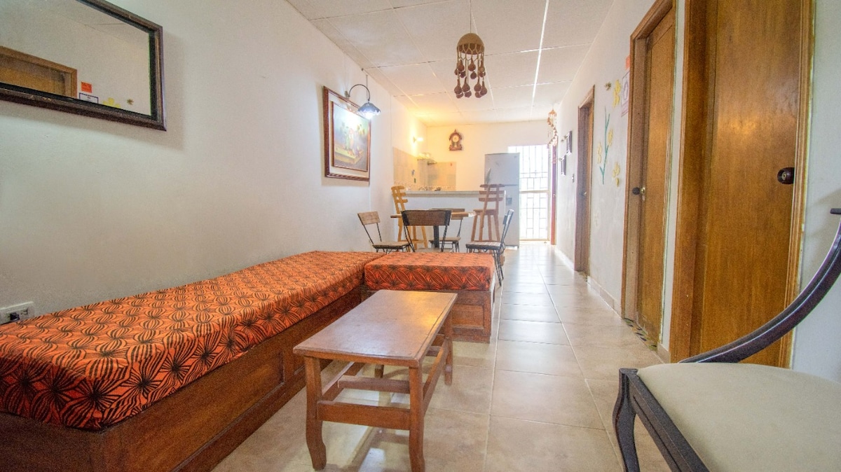 Disfruta tu estadía en Taganga con una maravillosa vista a la bahía rodeado de naturaleza. Apartamento de un espacio en primer piso con baño privado, cocina, sala y aire acondicionado, muy espacioso y super tranquilo, contamos con una terraza común en piso superior con vista. (La habitación no tiene vista directamente al mar) Relájate en este tranquilo lugar lejos del ruido y a 500 metros de la playa, donde puedes disfrutar tu desayuno con una excelente vista al mar.