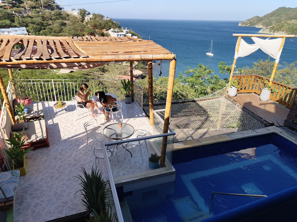 Cierre del Parque Tayrona entre 19 de octubre al 2 de noviembre de 2025. Loft con espectacular vista a la bahía, diseño elegante y cómodo, perfecto para disfrutar de días de descanso en pareja o temporadas de trabajo. Cocina completa con vista a la bahía. Amplia terraza privada, aircon, internet, fibra óptica, televisor conectado a internet. Área social con piscina compartida, vista a la bahía, barbacoa y sitio de descanso. Loft no apto para niños, ni personas con limitaciones para caminar.