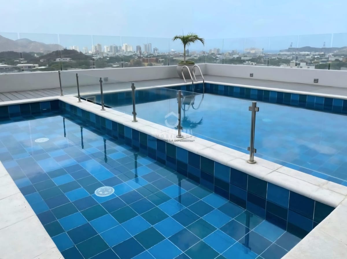 Despierta frente al mar y disfruta los atardeceres más mágicos de Santa Marta desde el balcón de este luminoso apartamento. En el piso 13 del exclusivo Grand Marina Apartasuites, con acceso a la espectacular piscina del hotel AC Marriott. Moderno, elegante y lleno de luz, cuenta con gimnasio y sauna propios en el edificio, además de cocina equipada, zona de trabajo, Wi-Fi rápido y parqueadero privado. Un lugar perfecto para relajarte y sentirte en casa.