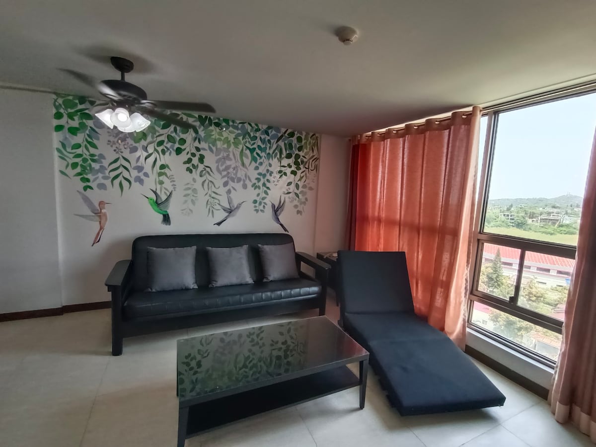 Quédate en este extraordinario alojamiento y no te pierdas nada. Cerca de todo lo que necesitas. Un lugar muy agradable para alojarse, pasar el rato o simplemente relajarse. * Aire acondicionado * Televisor de 65 pulgadas * Altavoces de barra de sonido con subwoofer * Wifi. * Purificador de aire * Cama de matrimonio de 54 x 75 * Cama individual extraíble COCINA * Nevera LG de 7 pies cúbicos. * Cocina de inducción * Horno de microondas * Hervidor de agua eléctrico Ollas y sartenes * Utensilios de cocina * Vajilla BAÑO * Calentador de agua de punto individual * Lavadora totalmente automática