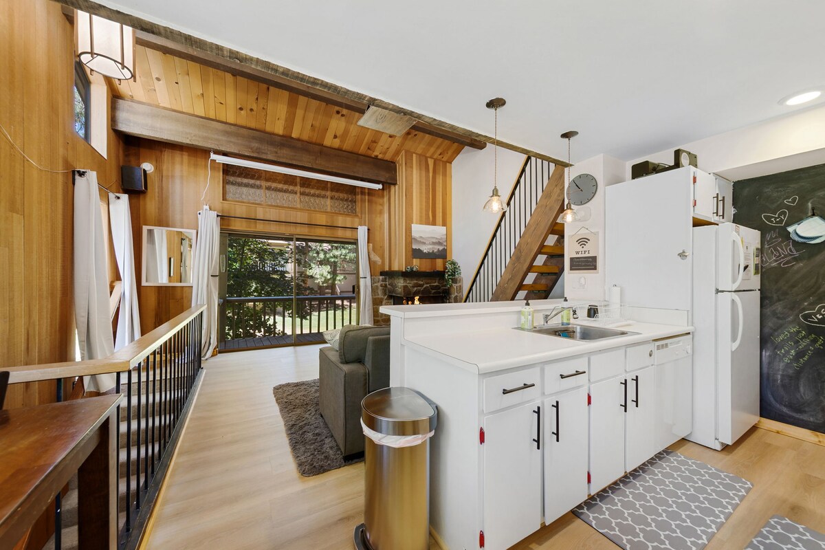 Preciosa cabaña de 3 dormitorios con terraza privada en Truckee 8 huéspedes 3 dormitorios 6 camas 2 baños Situada a 15 minutos del centro de Truckee, esta encantadora cabaña de 3 dormitorios/2 baños ofrece la escapada perfecta a Tahoe. Entra en calor junto a la chimenea de leña, relájate en la espaciosa terraza o juega una ronda de futbolín en el loft. Capacidad para 8 personas. DESCRIPCIÓN DE LA PROPIEDAD Una planta abierta con techos abovedados, suelos de madera y una moderna decoración de montaña crean un ambiente acogedor, con una gran cantidad de espacio interior y exterior.