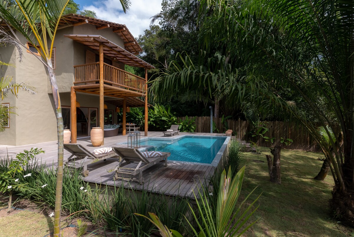 Casa nueva integrada en el bosque, perfecta para relajarse, disfrutar de la naturaleza, apreciar las flores y los pájaros, ¡recibir visitas de titíes y perezosos! Cuenta con 3 suites, piscina con hidromasaje y playa para niños. Cocina completa y parrilla. ¡Hay hamacas para descansar en medio de la naturaleza! La casa está a 700 metros de la plaza de Trancoso, en pocos minutos se llega al centro histórico de la ciudad! Las playas están a 1 km de distancia, ¡también accesibles a pie!