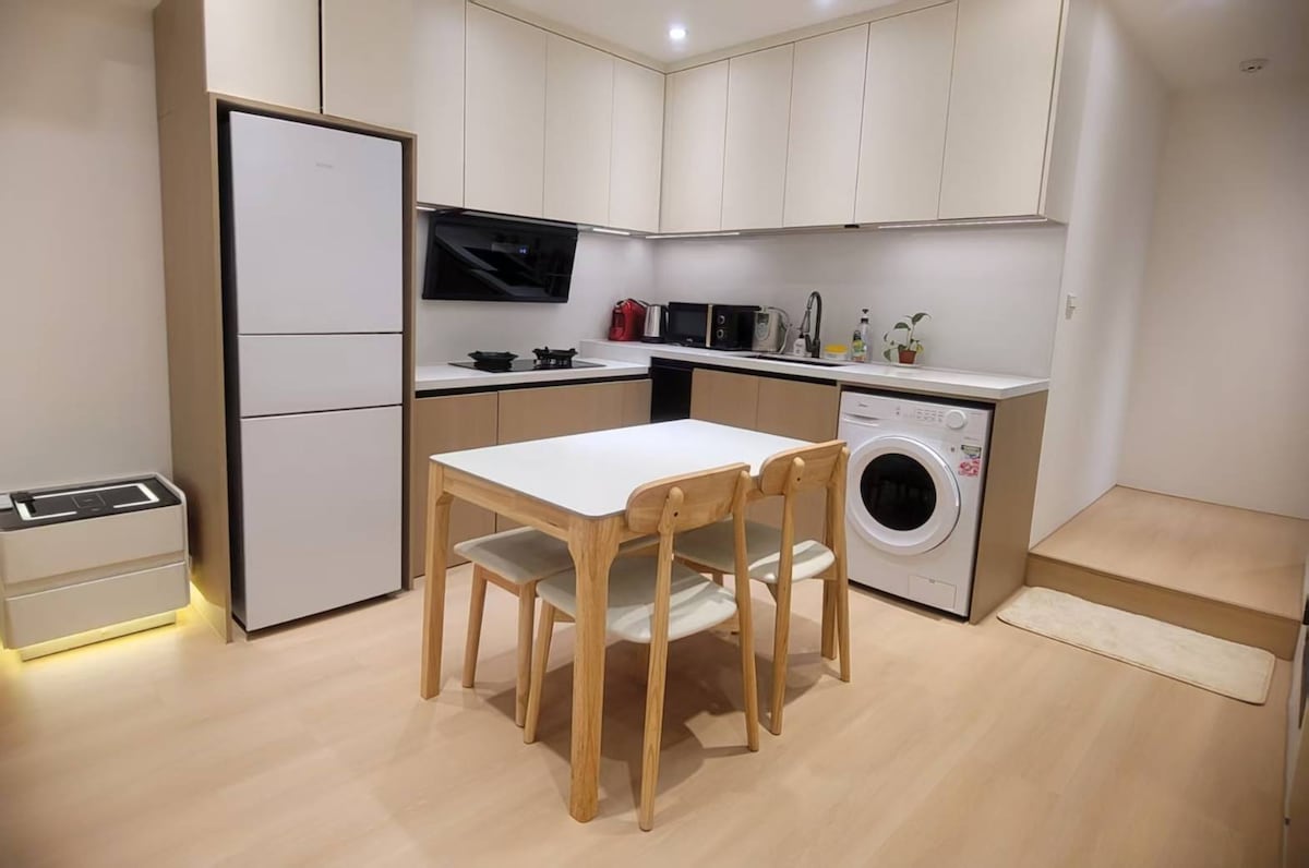 Decoración nueva de alta gama / A 1 minuto a pie de la estación de metro de Shuanglian / Televisor de proyección de 100 pulgadas / Sofá cama doble / Inodoro inteligente / Lavadora y secadora / Mercado nocturno de Ningxia / Cocina perfecta
