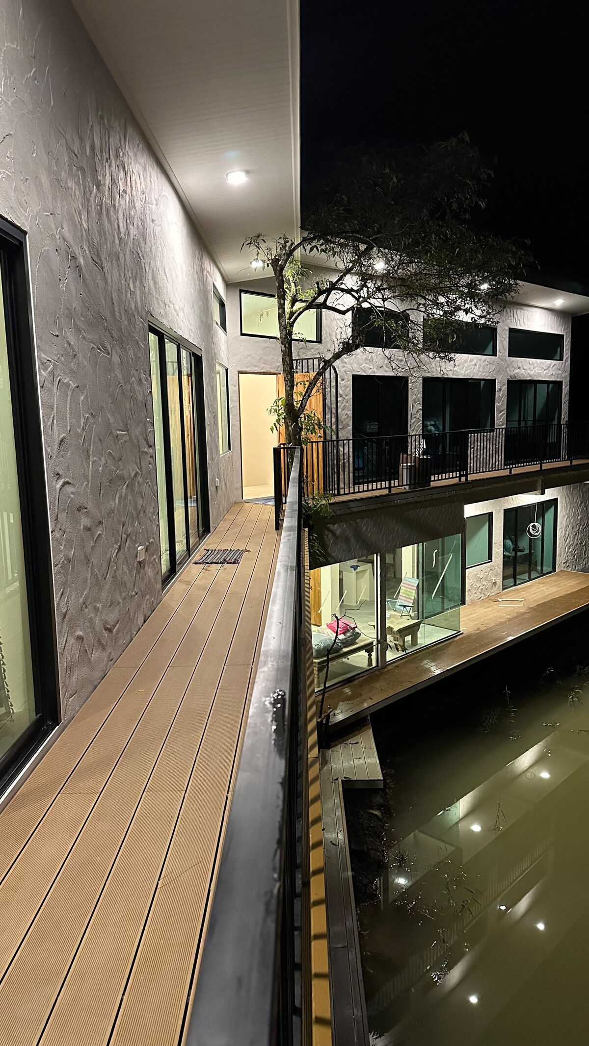 Es tranquilo. Vivirás directamente en nuestro lago y casi dentro de la selva. Es nuestra propia escapada única y súper tranquila del ruido y la distracción. Estamos rodeados de nuestra propia comunidad de personas amantes de la naturaleza, con ideas afines, nadando, remando, pescando o entrenando con nosotros. Está a solo un paseo / carrera de la famosa Memory Beach para surfear o un baño increíble al atardecer. La unidad 3 está en el segundo piso con cocina, sala de estar y 2 dormitorios especiales y tu propio balcón del lago.